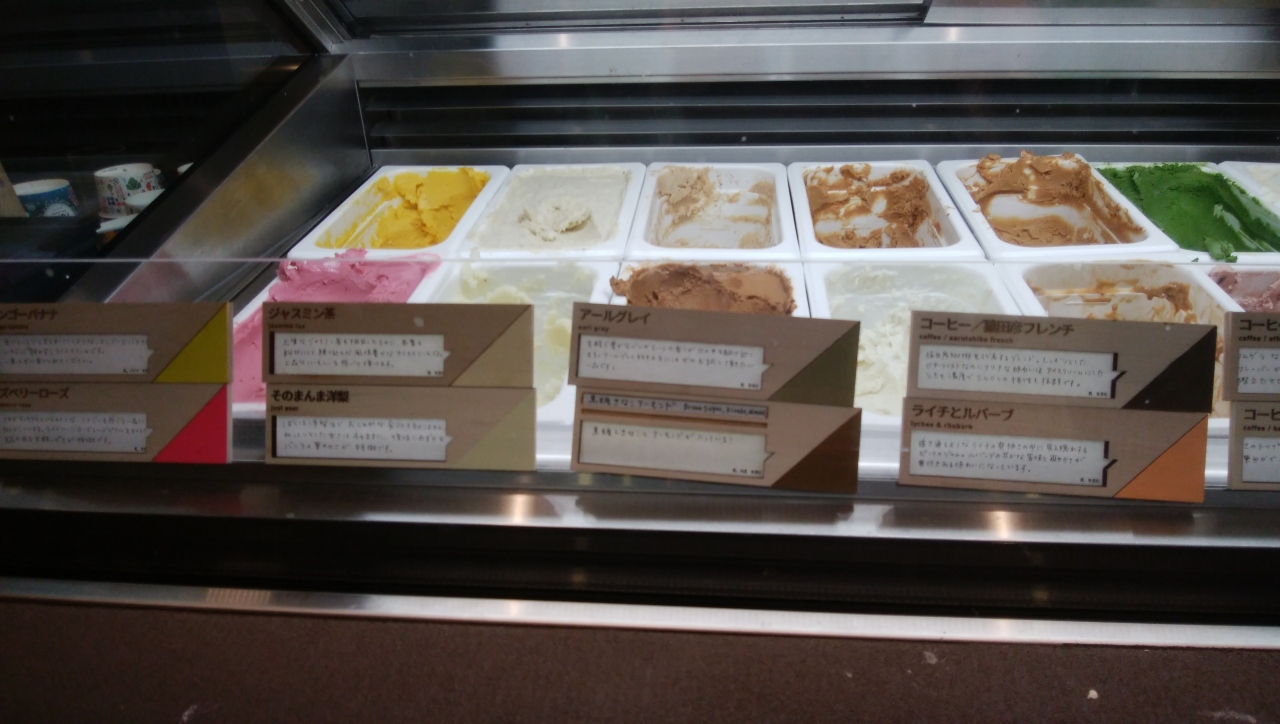 アイスはフレーバーにコーヒーがありティキタカブレンドとか 猿田彦フレンチとか。ほかには抹茶とかあずきとかもありました。細長くカウンターを作っていて、おしゃれな雰囲気になっています。 2個からなので、できたら1個から売ってくれるとサクッと食べられるのにと思います。