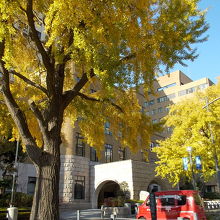 日本大通りは言わずと知れた銀杏並木が見事な黄葉を見せますが、県庁舎と並び、この建物は黄色く染まった銀杏とよく似あっています。