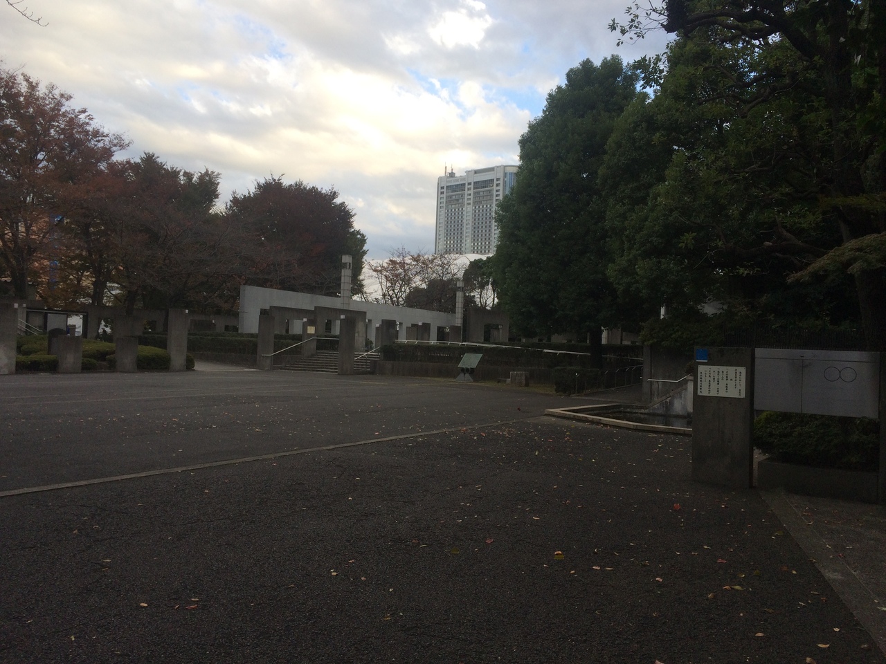 さきの大戦で犠牲になった霊をお慰めし、平和を願う都民の決意を表すために作られた場所です。平和の願いを示した石があり、池があり人工の滝がありました。敷地内はコンクリートが目立つ印象でした。建物があり遺品の展示があります。