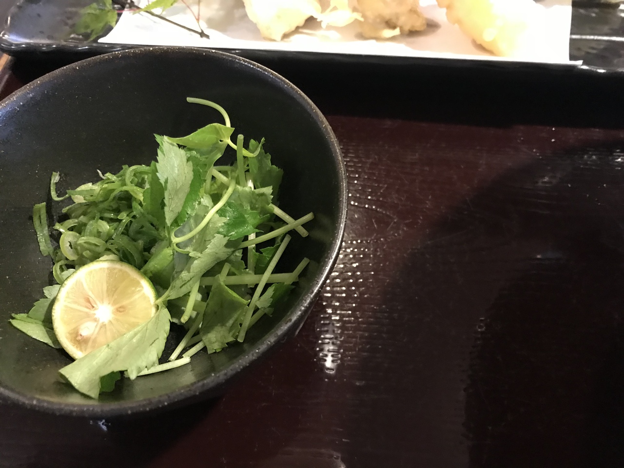 エビ天×1尾、舞茸×2個、甲子マメ×3本で