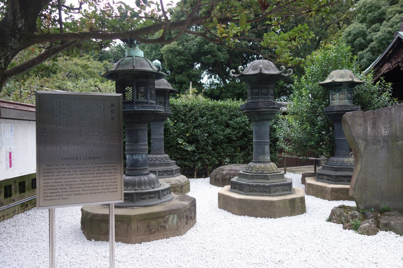 上野東照宮の大石鳥居と水舎門を抜けて参道を進む際には石灯籠が並び、社殿や唐門に近づくにつれ銅燈籠が並びます。大きくて立派で諸国の大名からの奉納品だそうです。これらを眺めていると当時の徳川勢力の強さを目の当たりにします。