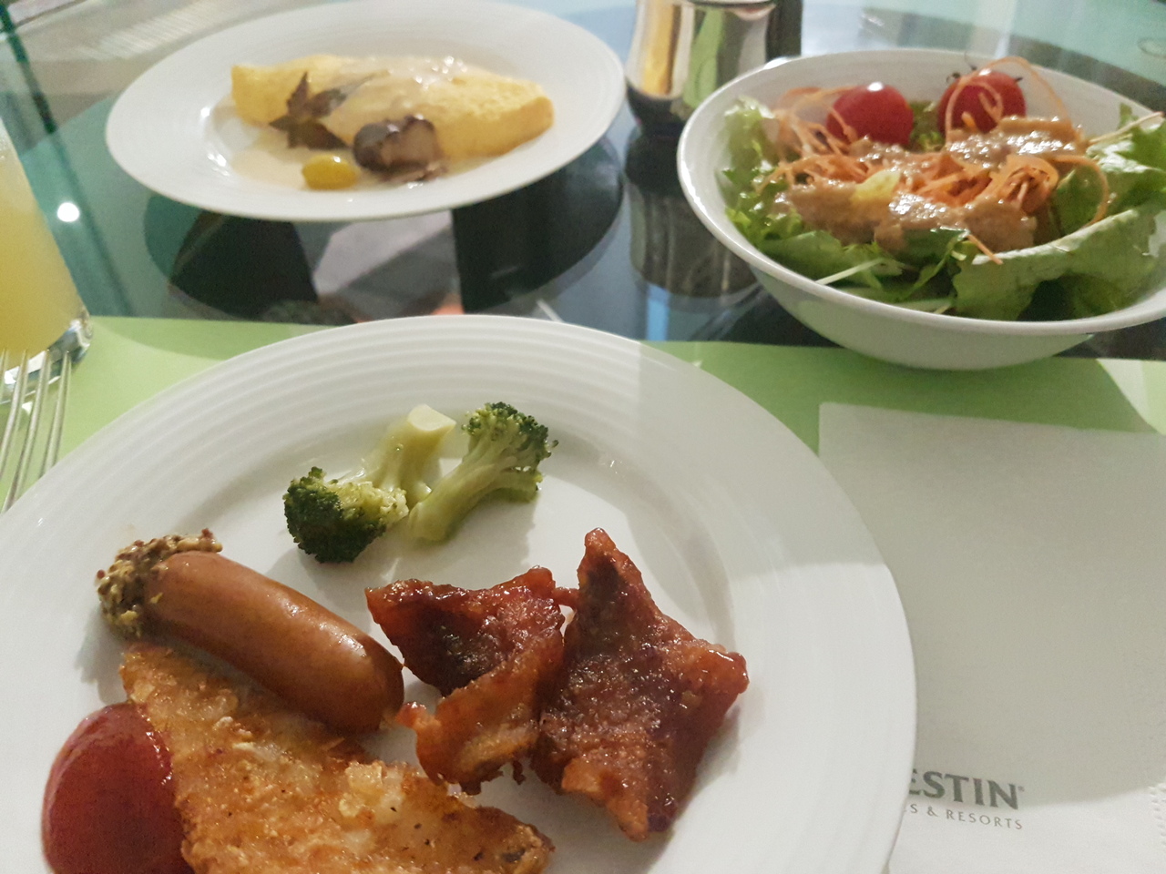 前回は空いていたので吹き抜けの明るい開放感を感じながら、でしたが、今回は宿泊客が多かったのかロビーまで使用。