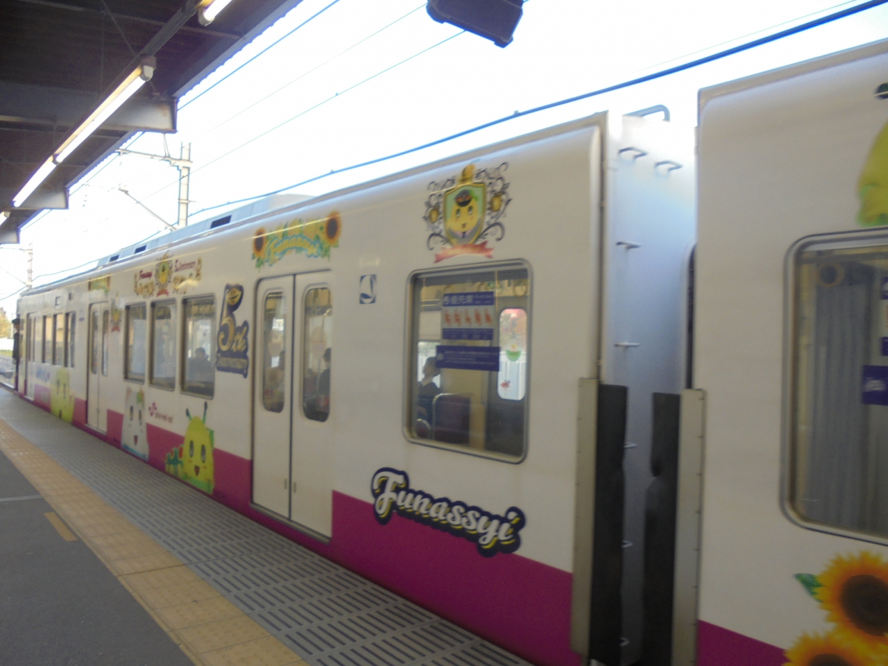 ふなっしーの電車に乗りたくて駅員さんに聞きながら