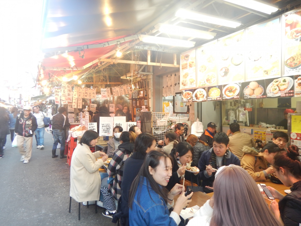前回見た耐震工事は終わっていた。ただ歩いてみると鮮魚を扱っている店がどんどん減っている。その代わりに増えているのが屋台のような手軽に食べられる店だ。エスニック料理の店は十分あるので、海鮮丼などの魚介類を食べさせる店が増えていた。