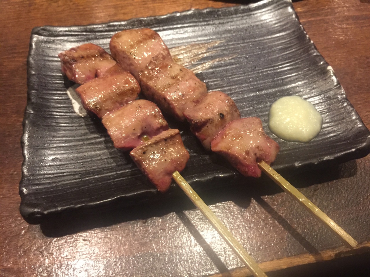 この日に食べたのは焼き鳥のハツ、白レバーに牛すじ煮込、、、どれも美味い(^ ^)