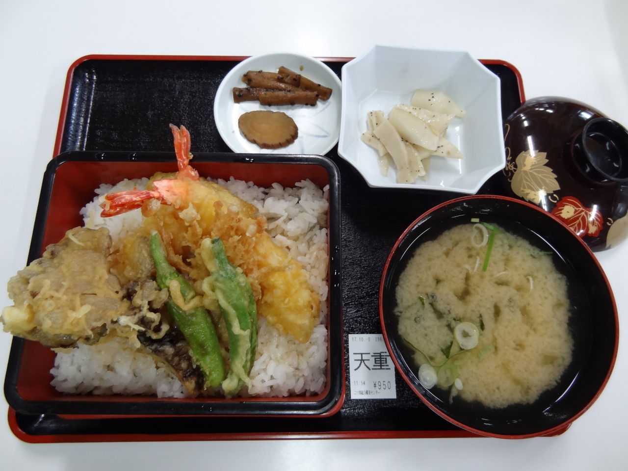 道の駅にある観光センターで、二ツ井市の観光スポットを女性職員の方から教えてもらえました。とても観光客には親切で旅行の話もよく聞いていただけて、とても気持ちが良かったです。隣の建物にあるレストランで昼食もいただきました。それほど構えて入るような施設ではないので、気軽に食事ができます。注文したメニューは天重。他のお客さんも天重を注文していたので、どうやらこのレストランの人気No.1なのでしょう。