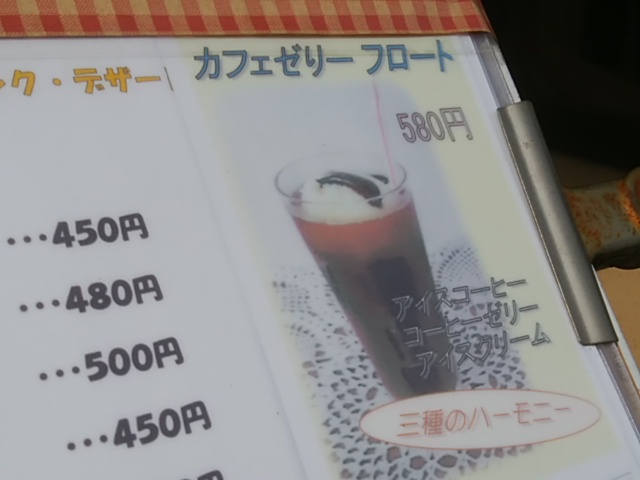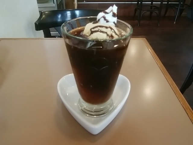 「カフェゼリーフロート」580円(税込)を注文しました。アイスコーヒー、コーヒーゼリー、アイスクリームの三種のハーモニーだそうです。