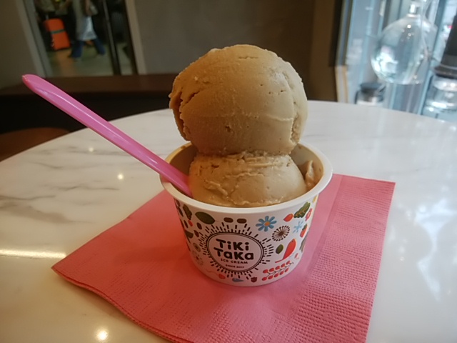 アイスを食べにきました!2つ選んで486円(税込)です。せかっくなので、コーヒーを…。店名に忠実に「猿田彦フレンチ」「ティキタカブレンド」をチョイスです。