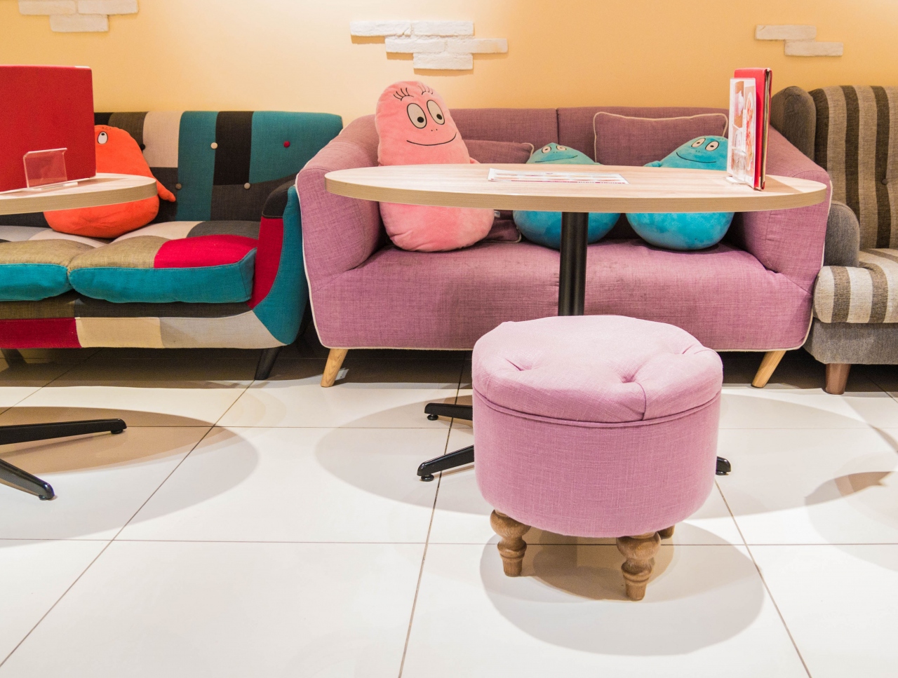 とにかく可愛くて癒されました。壁も、置いてある小物も、各テーブルにあるクッションも、バーバパパづくしです。メニューも可愛すぎて迷いました。