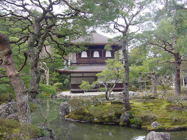 金閣のようなきらびやかな建物も人気でしょうが、私は銀閣が好き。京都の閑かさを象徴する、重厚な建物です。いろいろな方向から見るのがいいのですが、とくに展望台から見る庭園と一体化した姿がお気に入り。いにしえの、計算された芸術的センスを感じます。