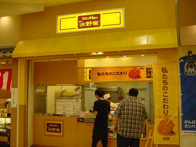 コロッケやミンチカツで人気を集めるチェーン店。阪急千里線の山田駅に直結する「DEW阪急山田」の中にあって、テイクアウト専門店です。ミンチカツは和牛入りで上品な作り。これを2枚とビーフコロッケを2枚のセットがお得な値段になっています。