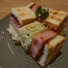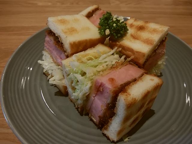 少ししてハムカツサンド登場。パンの大きさと同じサイズの厚切りハム。ソースがちょっとたっぷりすぎな気がするけれど、美味しかったです。