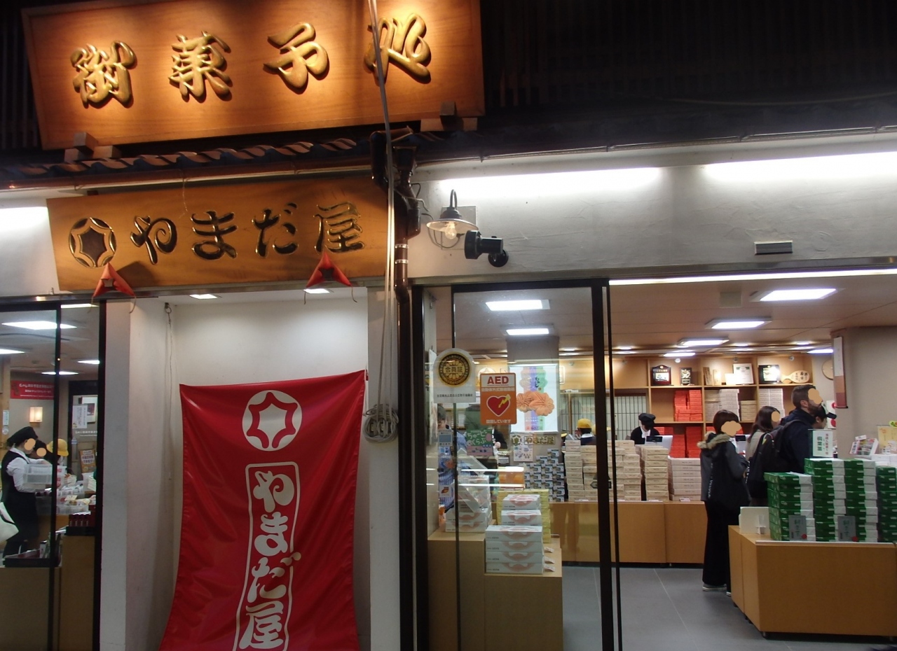 宮島桟橋から厳島神社への道沿いにたくさんのお土産屋さんが並んでいます。最後の鳥居までの通りの一番端の角にやまだ屋さんがあります。