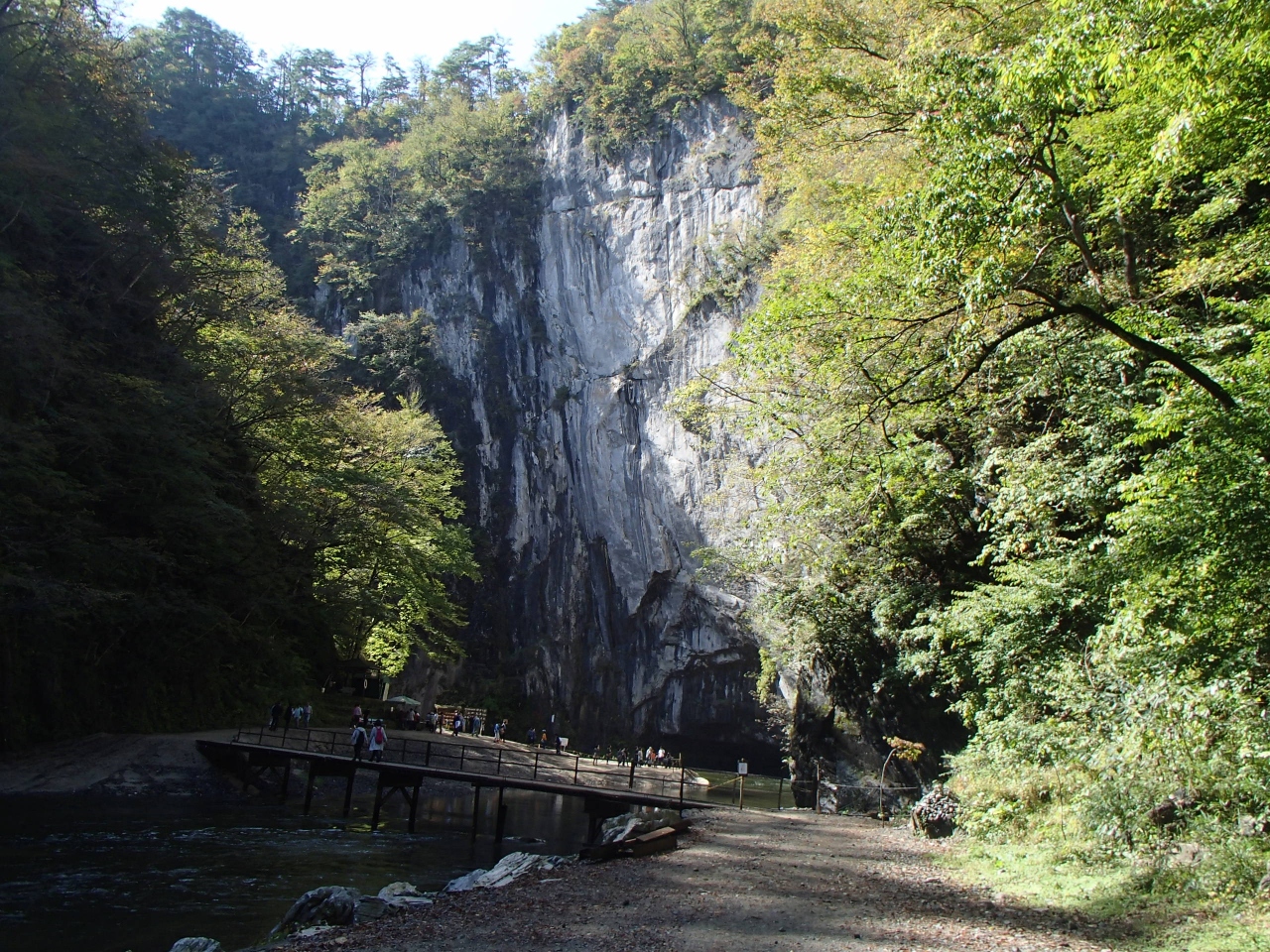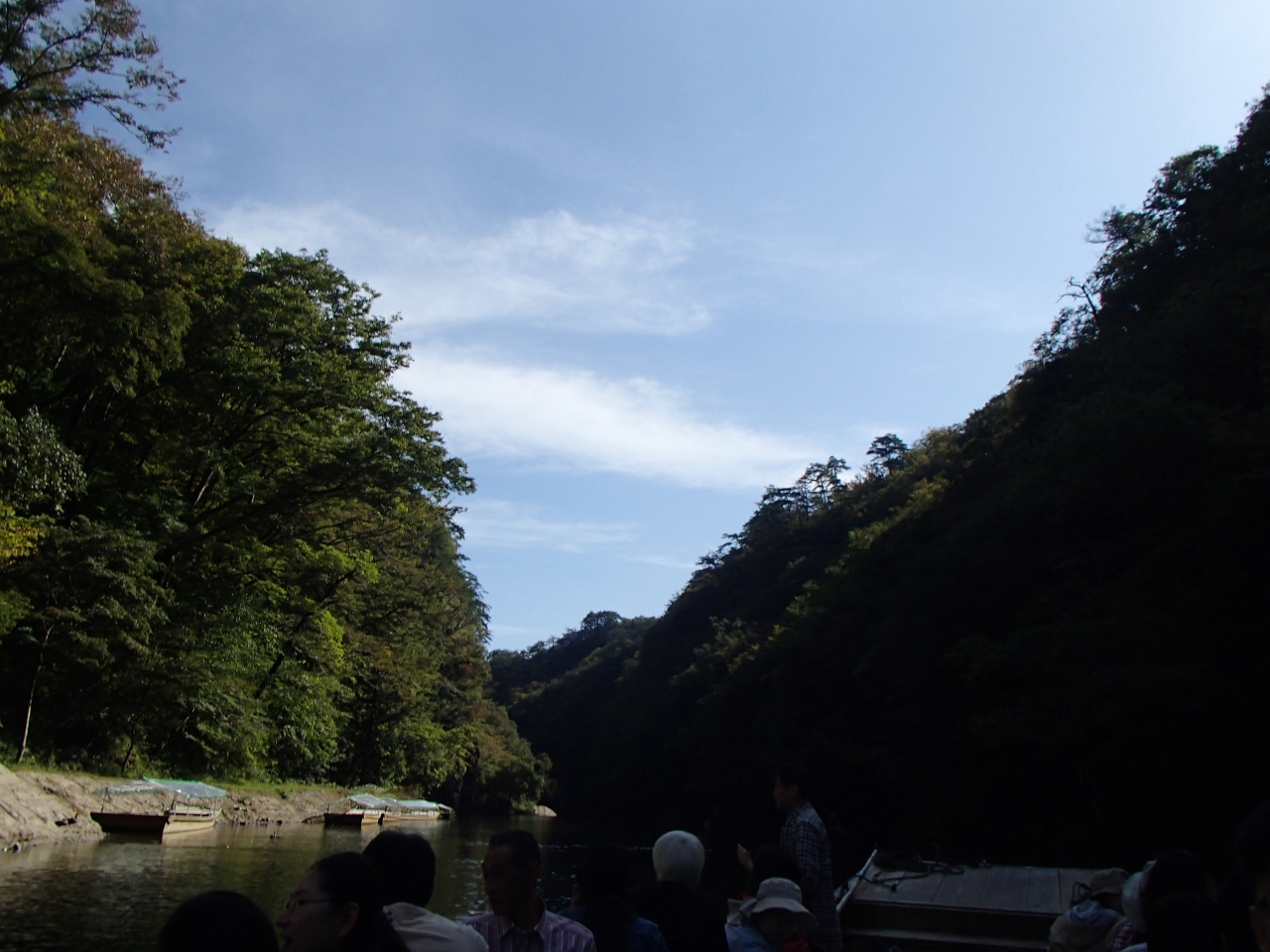 10月の3連休2日目に行って来ました。前日から一関に宿泊していたので、朝一番にホテルを出発し、9時頃猊鼻渓に到着しました。早朝でも既に乗船券発売所には並んでいる人達が数組居ました。連休中の為、船は順次出発していたので、乗船券(大人1,600円)を購入し、乗船するとすぐ出発になりました。