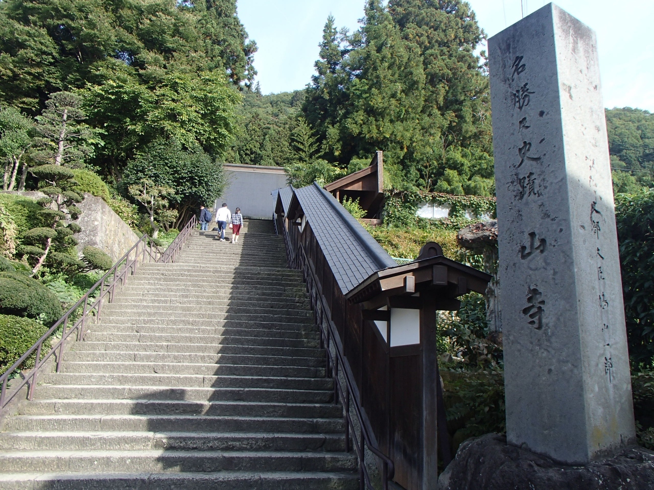 10月の3連休3日目に行って来ました。前日天童に宿泊したので、8時に車で出発して8時半には山寺の駐車場に着きました。1,080円以上利用すれば駐車料金が無料になるので、ふもとや本店に車を停めました。(山寺下山後にさくらんぼソフトを頂くので。)ふもとやから登山口までは歩いてすぐでした。まずは五大堂を目指してひたすら登ります。早朝だったので、参拝客が少なく、自分のペースで登る事が出来ました。きちんと整備されている山道だったのでそれ程歩きにくいことはありませんでしたが、スニーカーの方が断然良いと思います。