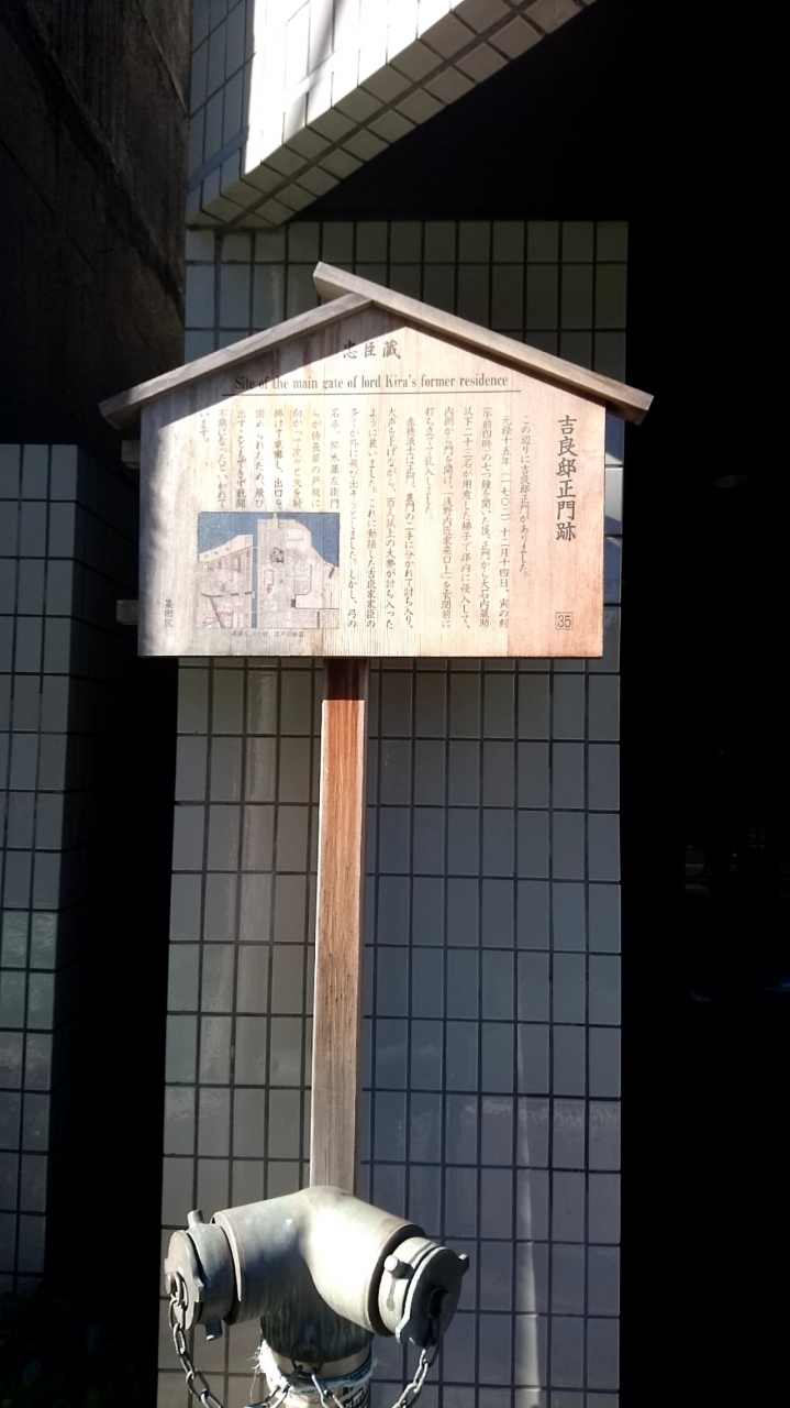 広大な吉良邸の正門があった場所として伝えられますが、屋敷跡として残されているのほんのわずかな一画です。1702年、主人浅野内匠頭のかたき討ちのため、大石内蔵助らが討ち入ったとされるのが、この正門ということです。忠臣蔵ゆかりの地が多いこの場所に来ると、気持ちが高まってくる思いがしました。