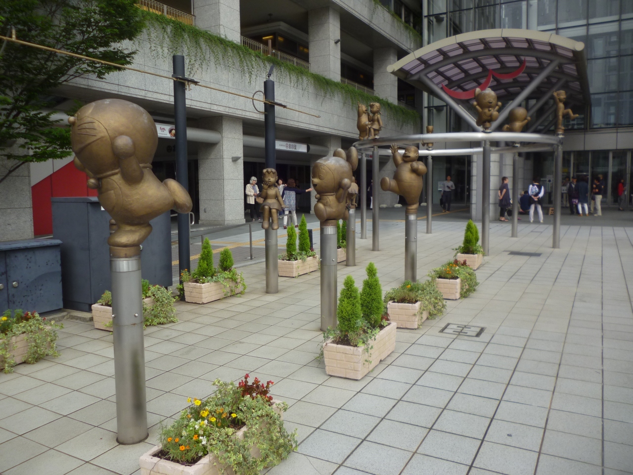 高岡駅のからすぐの広場にあります。ドラえもんはもちろん、のび太君、しずかちゃん、ジャイアン、スネオなどドラえもんキャラクターが勢ぞろいしています。わかりやすい広場にあるので高岡に来た人は、必ずと言っていいほどここに寄りますね。私たちも昼夜2回訪れました。さすが藤子・F・不二雄さんの出身地ですね。