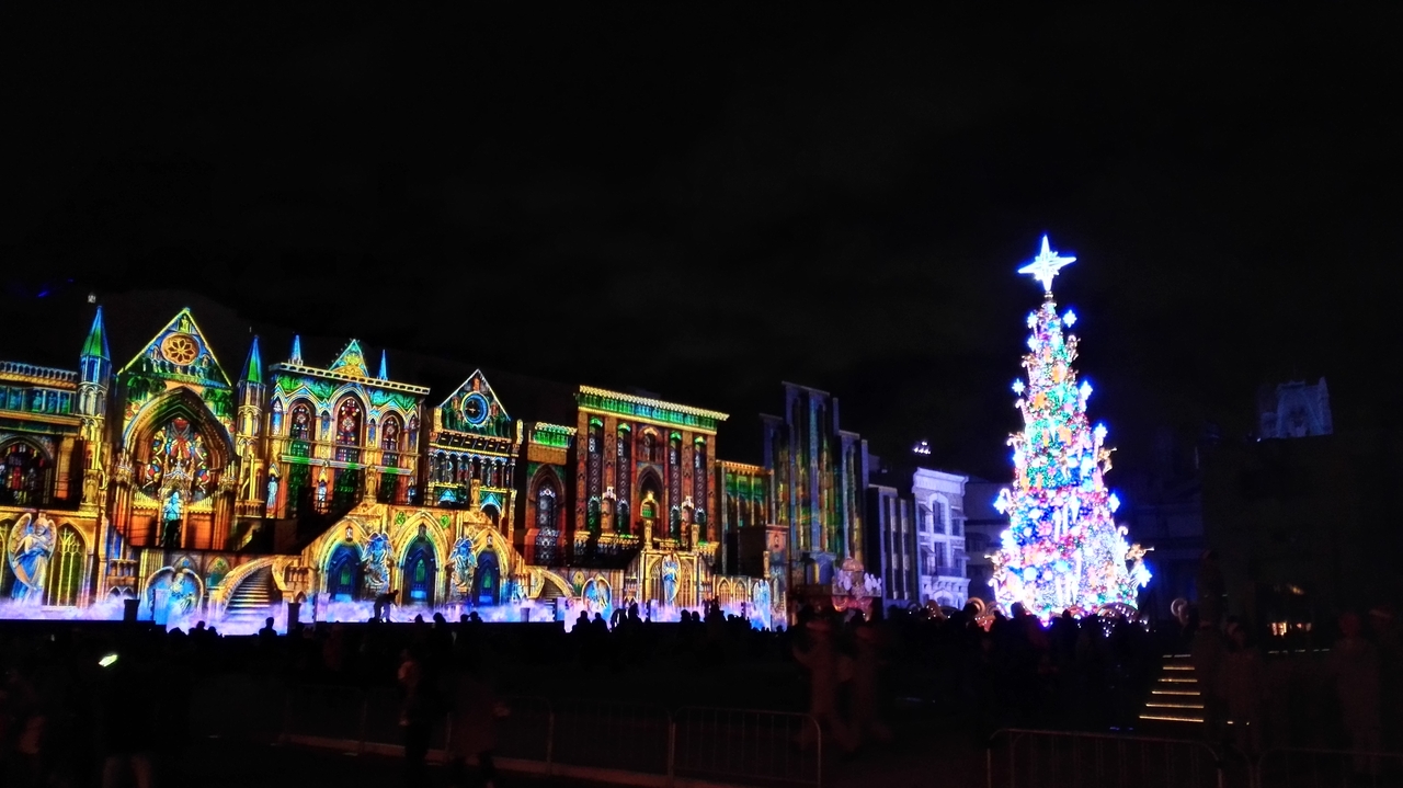 また、続いているプロジェクションマッピングの「天使のくれた奇跡Ⅲ」は今年から観覧席ができて見やすくなっていると思います(有料ですが)。夜を見逃す手配ないです