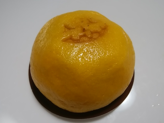 かぼちゃ色のまんじゅうに、ジャックオランタンの目、鼻、口だけの焼き印が押されたおまんじゅう。とってもしっとりとした蒸しまんじゅうで、カットすると、中の餡もかぼちゃ餡…という、かぼちゃづくしのおまんじゅうでした。