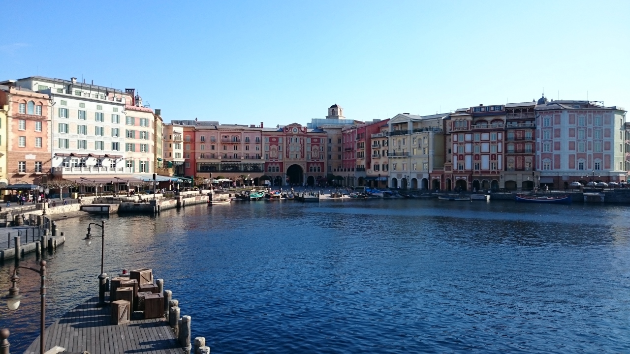 ディズニーシーに入ってすぐ正面の海です。テーマパークの海とは思えない広い海です。ここでパレードも行われます。海を利用した壮大さに感動します。
