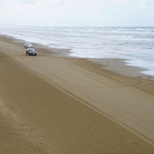 千里浜海岸は、日本でここしかないというなぎさのドライブウェイが圧巻。遠くから車がやってくるなと見ているとあっという間に近づいて通り過ぎていく。横からは日本海の荒波が打ち寄せて、危なくはないんでしょうが、やっぱりスリルも感じなくはない。いつまでも見飽きない景色のように思います。
