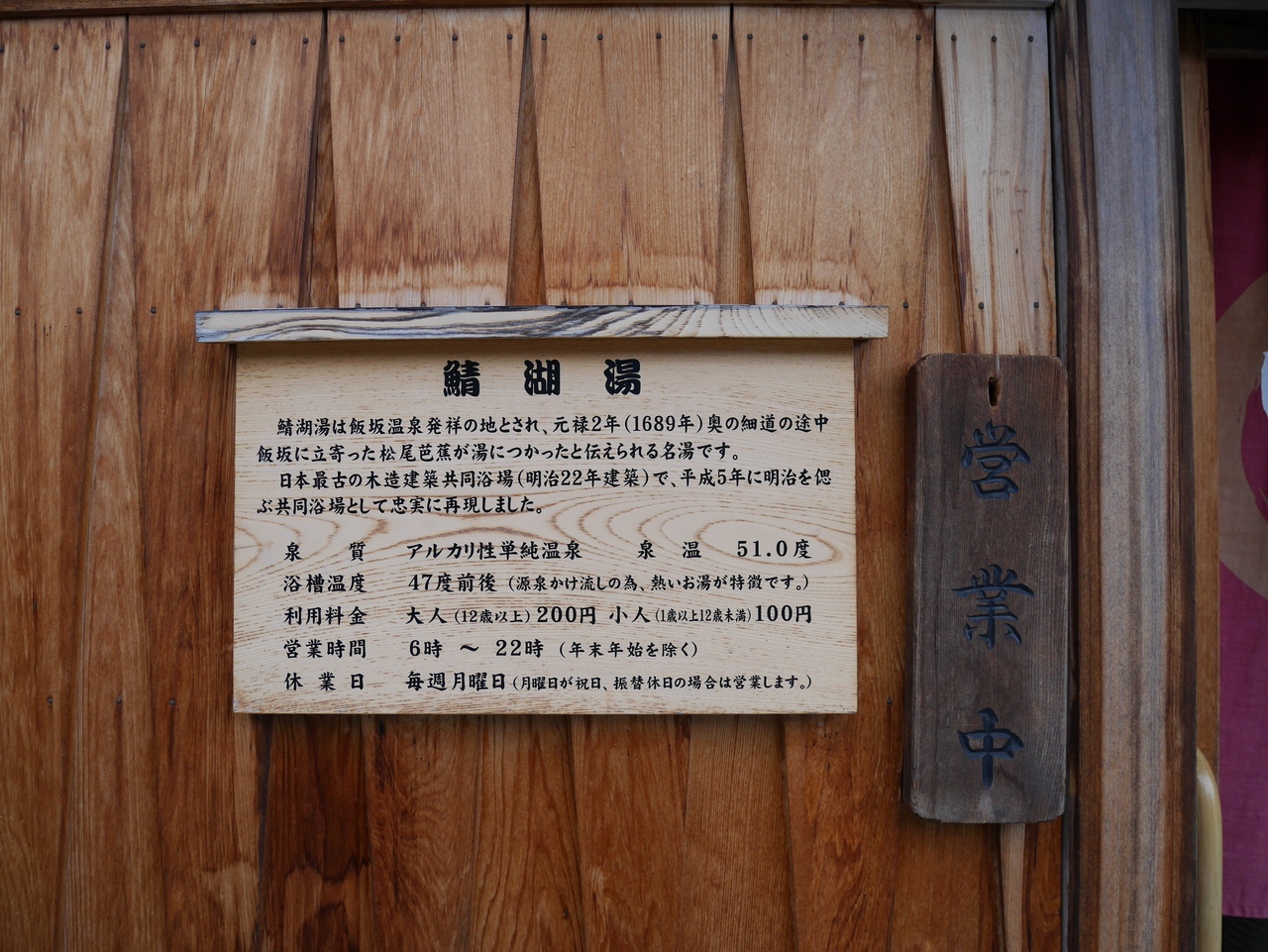 松尾芭蕉も湯に浸かったという言い伝えのある、歴史あるものです。飯坂温泉駅からは徒歩5分ほど、入浴料は200円でした。