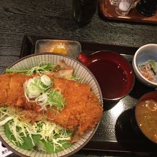 山海里ではトンカツ1000円を頼んだら、丼できた。