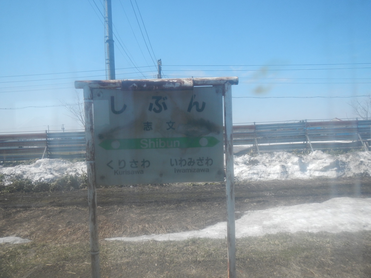 苫小牧発10時28分、岩見沢着12時02分の列車に乗った。この区間は「本線」となって入りが、完全なローカル線だ。最新の時刻表を見るとこの列車はなくなっていた。通学時間帯ではないので、乗客が少ないのだろうか。各駅停車なので駅名の表示をかなり撮影することができた。