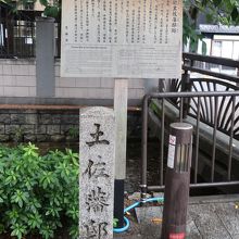 蛸薬師通りの木屋町通りの突き当たり、高瀬川沿いに土佐藩邸跡の石碑が立てられています。土佐藩士が襲われた池田屋事件、坂本龍馬が滞在していた酢屋、坂本龍馬が命を落とした近江屋事件等、幕末期に土佐藩に関係する事件の中心となった場所がここだったんだなと思うと、ワクワクします。