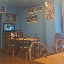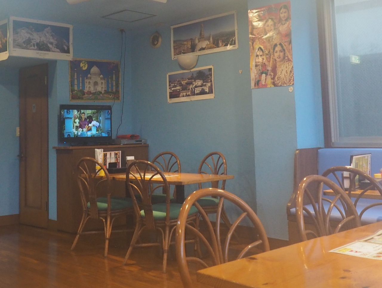 広々とした空間のインドカレーのお店です。明るいブルーに塗られた壁や貼られたインドのポスターがインドの田舎にあるカフェみたいな雰囲気です。店員さんもインドの人っぽかったです。(男性ばかりでした)