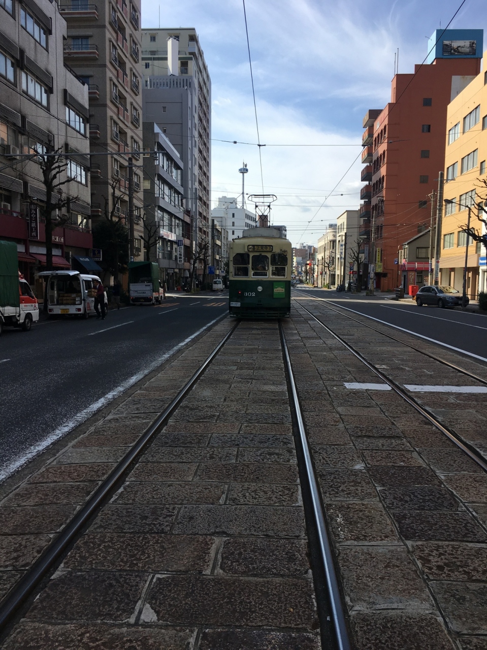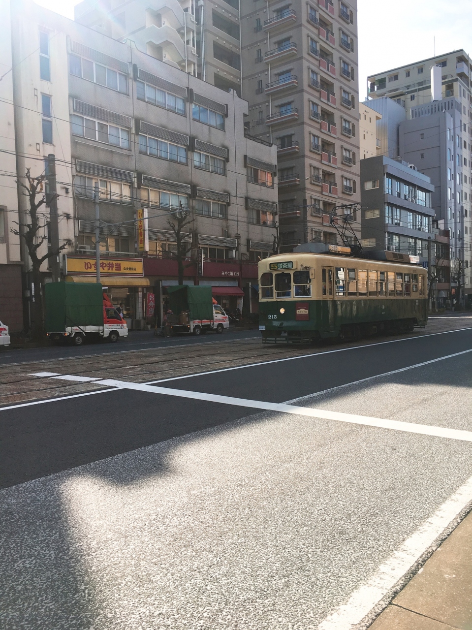 長崎といえば街中を走る路面電車が目に付きます。普段の生活に路面電車がないのでとても新鮮です。ただ、車の運転が不安になります。笑