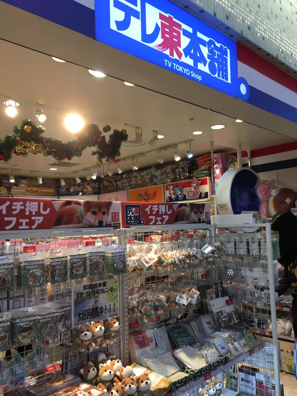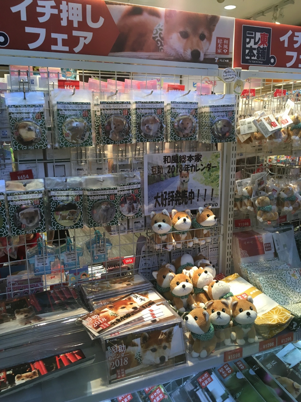 東京キャラクターストリートの中のテレビ東京のお店です。テレビ東京で放送している「和風総本家」に出ている小さな柴犬の「豆助」のグッズがたくさん売っていました。豆助の缶バッジやカレンダー、ぬいぐるみなど、どれもとても可愛くて全部買いたくなりました。癒やし系の動物カレンダーは眺めているだけでも癒されます。