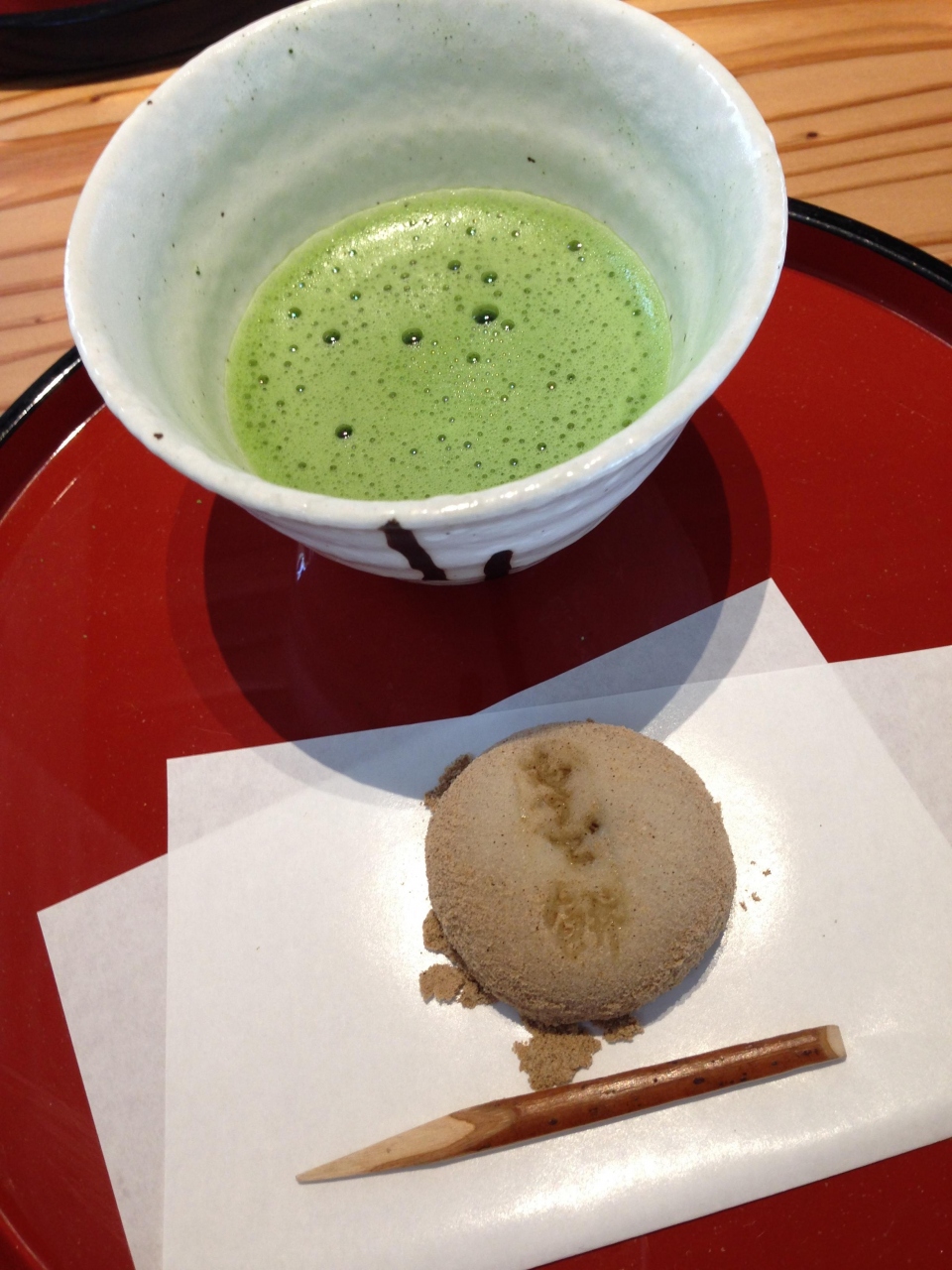 もうで餅は、柔らかなお餅の中にあんこが入っており、外側には玄米粉をまぶしてあるとても香ばしいお餅でした。