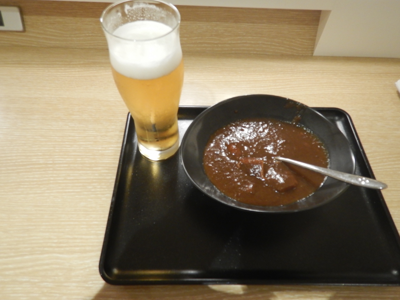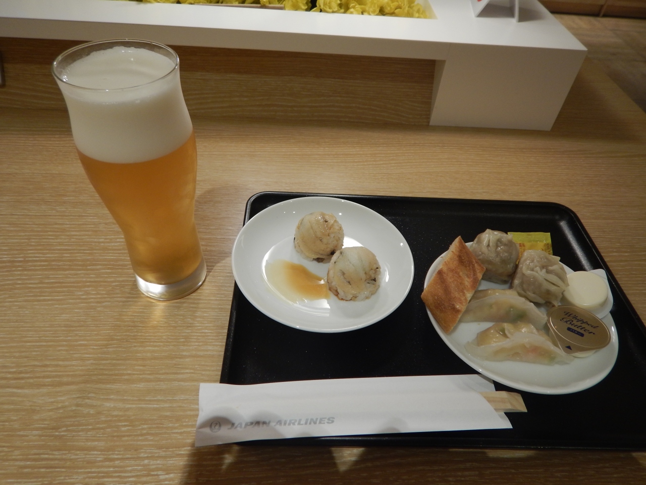 出発まで1時間少々ラウンジで過ごした。羽田のサクララウンジは生ビールが置いてあるので気に入っている。新聞を読みながらシュウマイや餃子などでビールを飲む。ここのビーフカレーは評判がよいそうなので〆に食べてみた。まあまあの味だった。