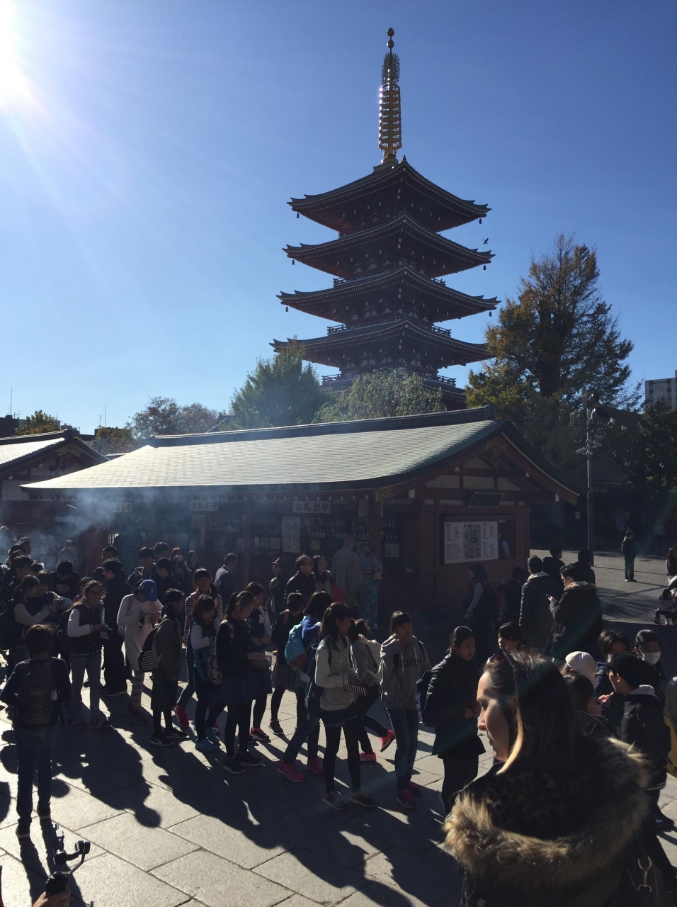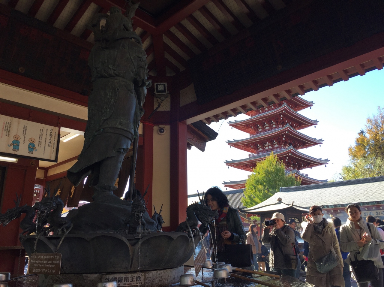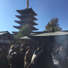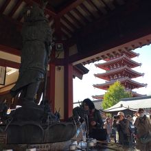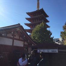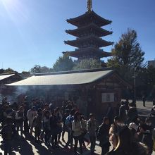昔はこの五重塔の反対側に三重塔があったそうですが、再建されなかったそうです。今は、こちら側には東京スカイツリーが見えます。