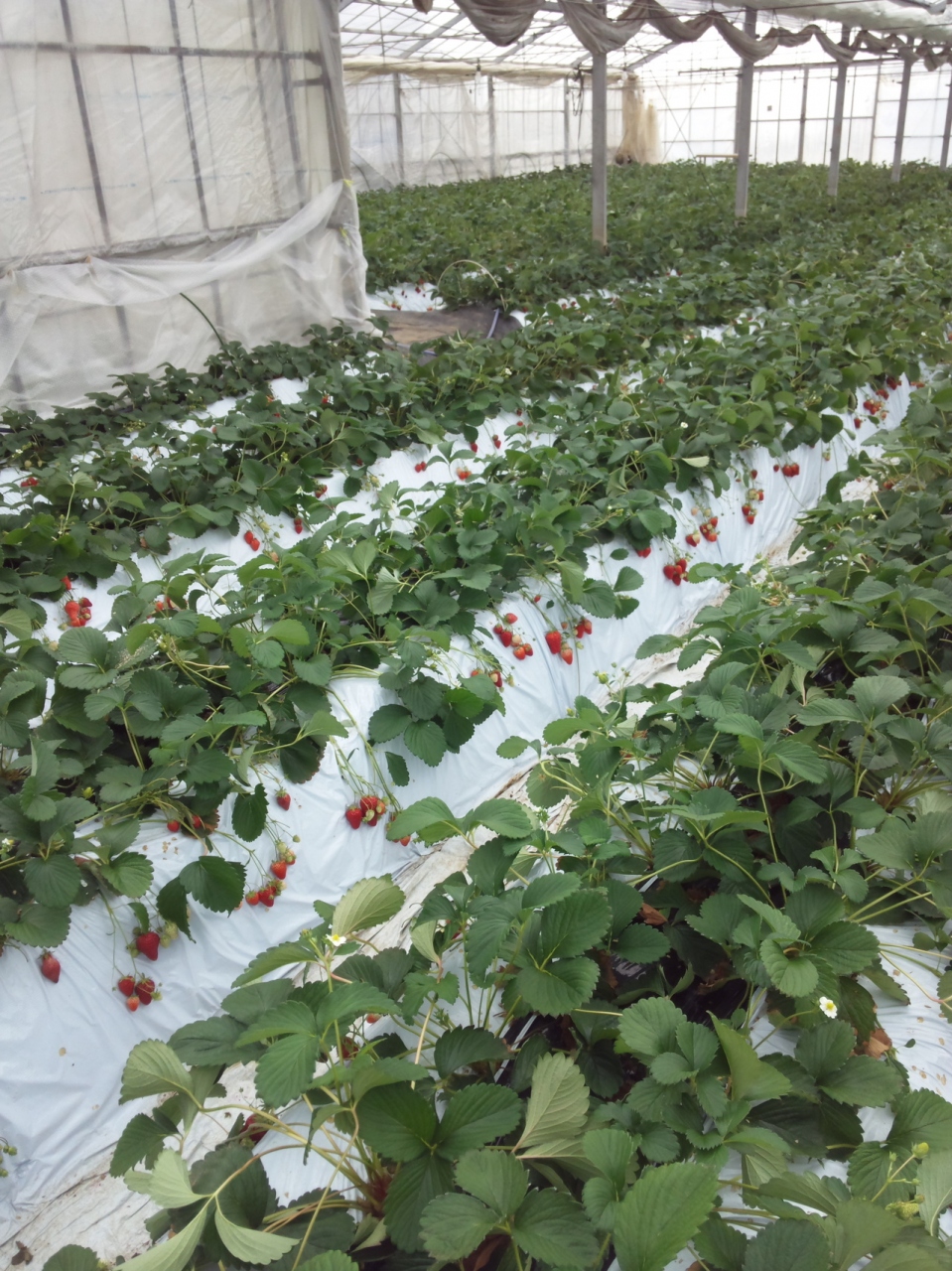 ビニールハウスで大切に育てられたいちごは赤くてつやつやとしています。
