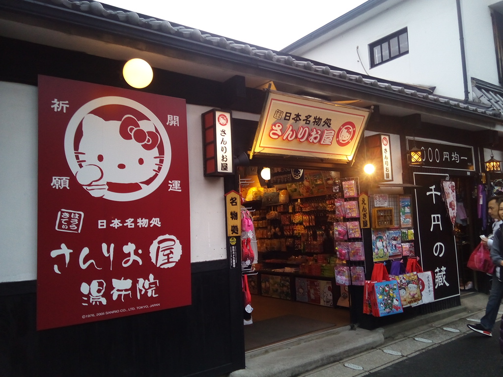 由布院のメインストリート、湯の坪街道沿いにあるキティちゃんグッズを扱っているショップです。キティちゃんグッズでも和風柄がほとんどで、街中で見かけるキティちゃんグッズとはちょっと違いました。キティちゃん好きの方や小さな女の子のお子さんへのお土産にちょうど良いと思います。