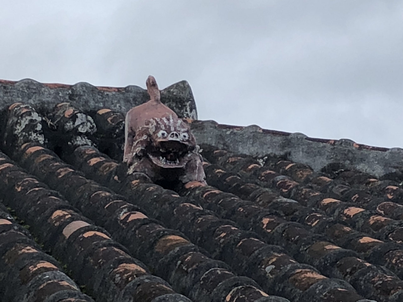 民宿の隣にありました。塀の中を覗くと庭には何もなく白い砂が広がっているだけです。学校が休みの昼頃には小学生が本を読みに来ていました。村民の少ない娯楽の場なのでしょう。屋根の上のシーサーがポチャッとしていて顔は猫のようで愛嬌があります。子供のアイドルなのかもしれません。