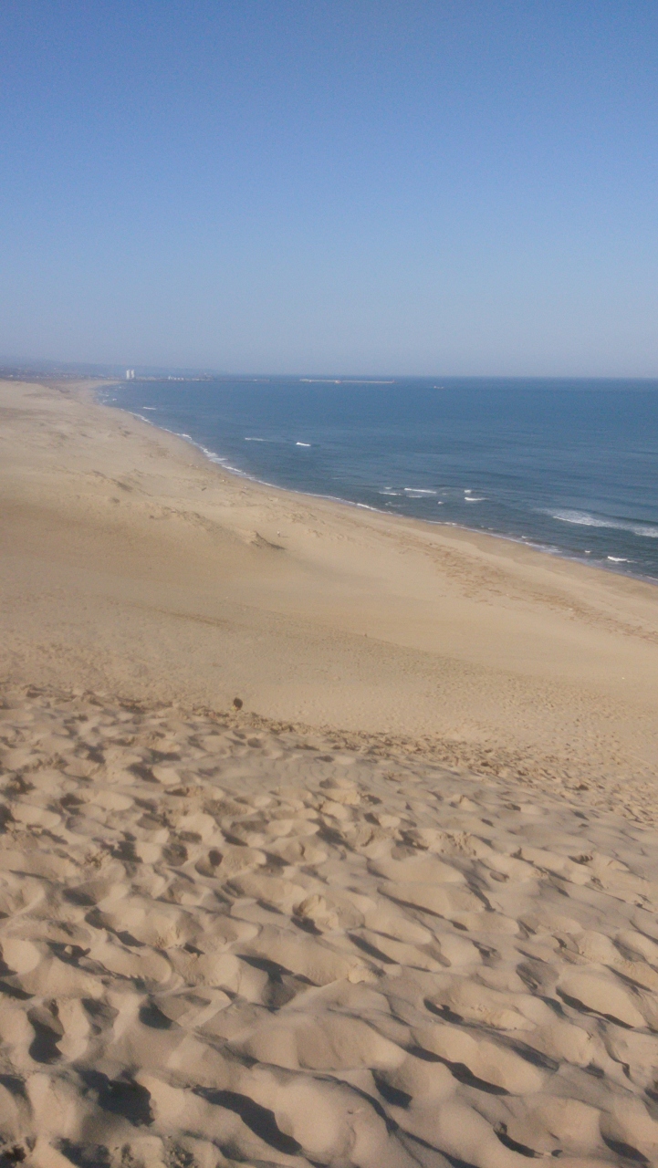 一面の砂の向こうに海が見えます