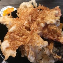 人気店のようです。少し待ちます。ランチの天丼750円。ふんわり天ぷらでエビ二尾。美味しかったです。りゅうきゅう丼やとり天などもあります。隣に宿もあり、温泉二食付きでお手頃価格のようでした。海鮮も美味しそうなので、次回は泊まってみたいです。