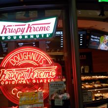 高級車が、二~三台展示してあります。 その中央、丸くなったエリアに「クリスピードーナツ」が出店していました。