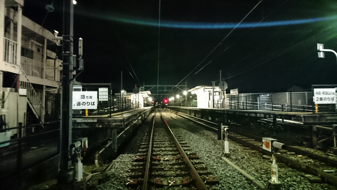 播但線の姫路から数えて4つ目の駅。交換のできる駅で、上り、下りともにホームがありますが、それぞれ独立していて行き来はできません。駅舎のない無人駅です。電化までは一本しかホームがない駅で、多くの列車が通過していたとのこと。周辺には田畑も見られますが、姫路駅から6キロくらいの場所なので、近年は住宅も増えています。駅前には、手袋で国内最大手のショーワグローブという会社の本社がある他、姫豊バイパスが走っているので、コンビニや飲食店も多く、ローカル線の駅、で片付けられない気もします。