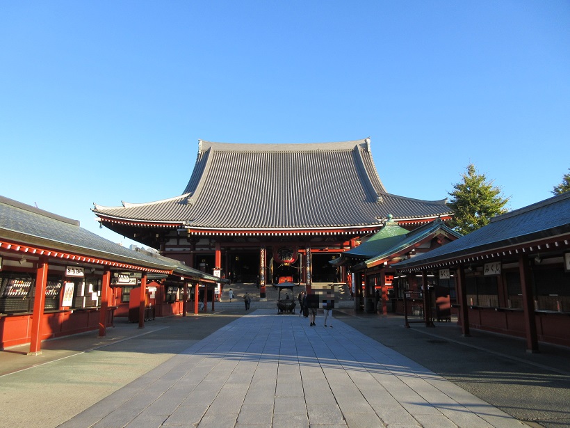 浅草寺に来て宝蔵門を抜けると眼前に見えるのがこの存在感のある本堂です。大勢のお客さんが一度に参拝できるだけの大きさで、欧米人など仏教徒でない外国の方も訪れていました。浅草寺は無料で見学できるので、地元の方が本堂前を通り過ぎる際に一礼しているのが印象的でした。