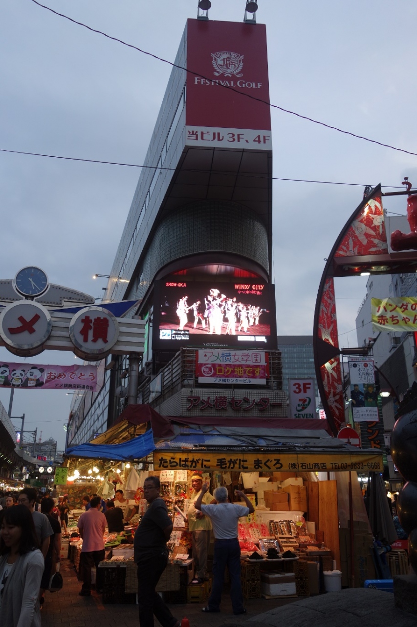 上野駅からアメ横方面へ向かった場合、アメ横と上中の通りが二股に分かれるところにある、とがった三角形の個性的なビルです。面積が小さいビルに多くのテナントが入っていていつも大混雑しています。鮮魚やアジアの食材などいろいろな食材も売られていて、アメ横らしい雰囲気がありました。