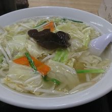 郡山の有名なタンメンのお店。メニューは、タンメン(普通盛、大盛)と餃子と飲み物しかなく、タンメンだけで勝負しています。タンメン700円(大盛は100円増し)、餃子300円なので、1000円札一枚で済むのも魅力。関心のタンメンは、かなり透明なスープにおもいっきり野菜が入っています。野菜は最後までシャキシャキしているので、飽きずにおいしく頂けます。スープは少し濃いめですが、野菜との相性がよく、野菜の甘みもしっかりと出ていて、ついつい飲み干してしまいます。また餃子は、最初店員さんから「タレはつけないで食べてみて」と言われますが、まさにその通りで、餡にしっかりと味があるので、タレは不要。そのままでも美味ですが、タンメンのスープに入れるとスープ餃子のような感じになって、これまた美味です。11時オープンですが、結構お客さんが入っていて、12時にはかなりの列。車がないと行きにくいお店なので、第二駐車場があるのも納得。