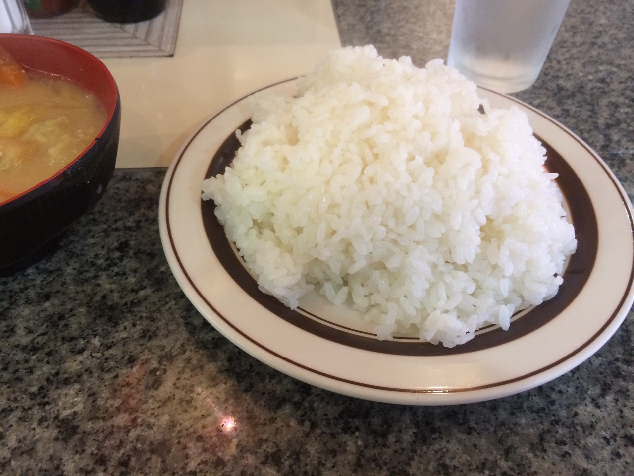 濃い目の独特の味で熱く炒めた野菜で大盛りライスの半分はなくなった。