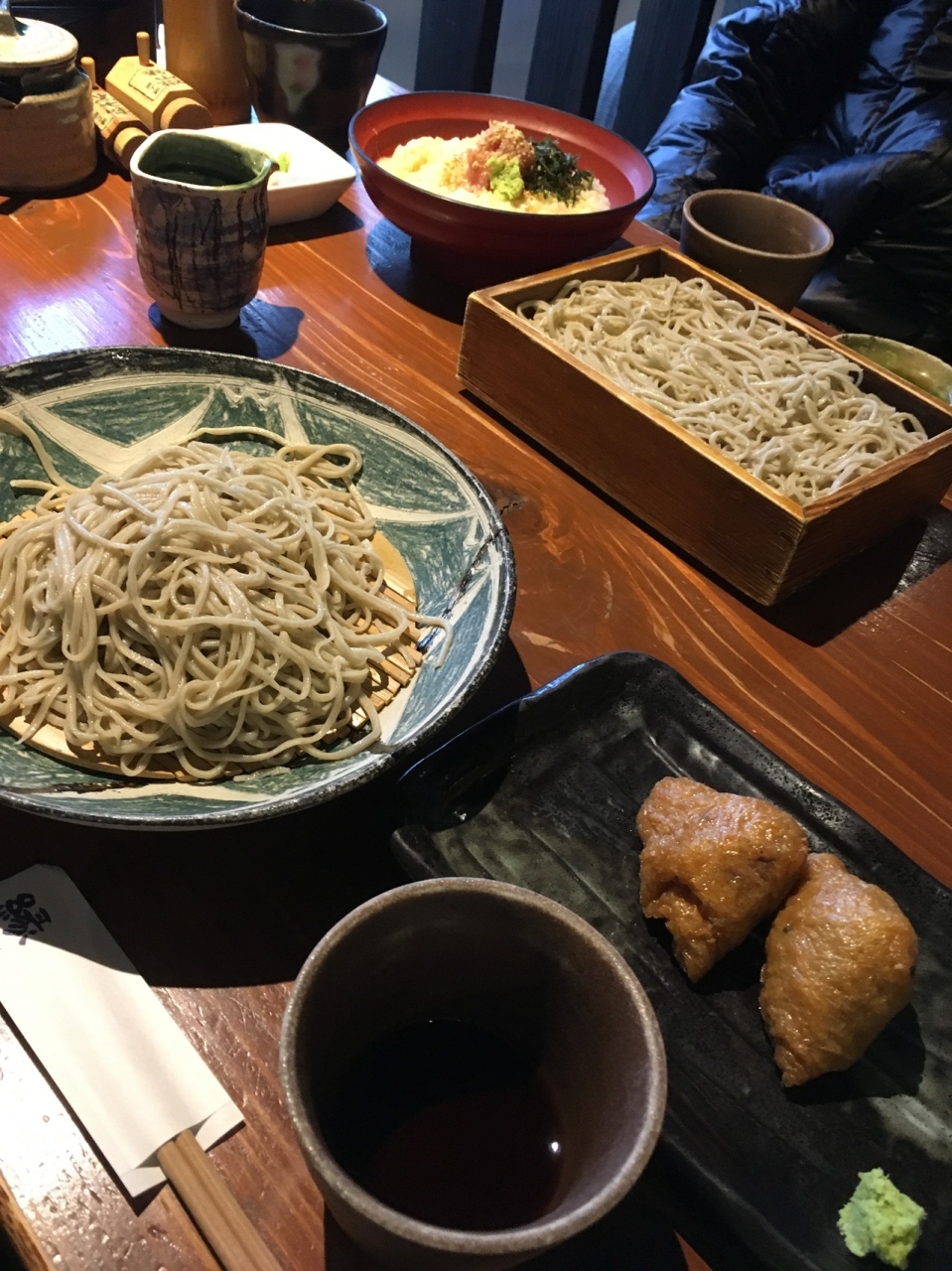ランチメニューのせいろ蕎麦といなり寿司2個のセット850円、連れはせいろ蕎麦とマグロ丼とろろがけのセット900円を頼みました。マグロ丼は無料でご飯大盛りに出来ます。