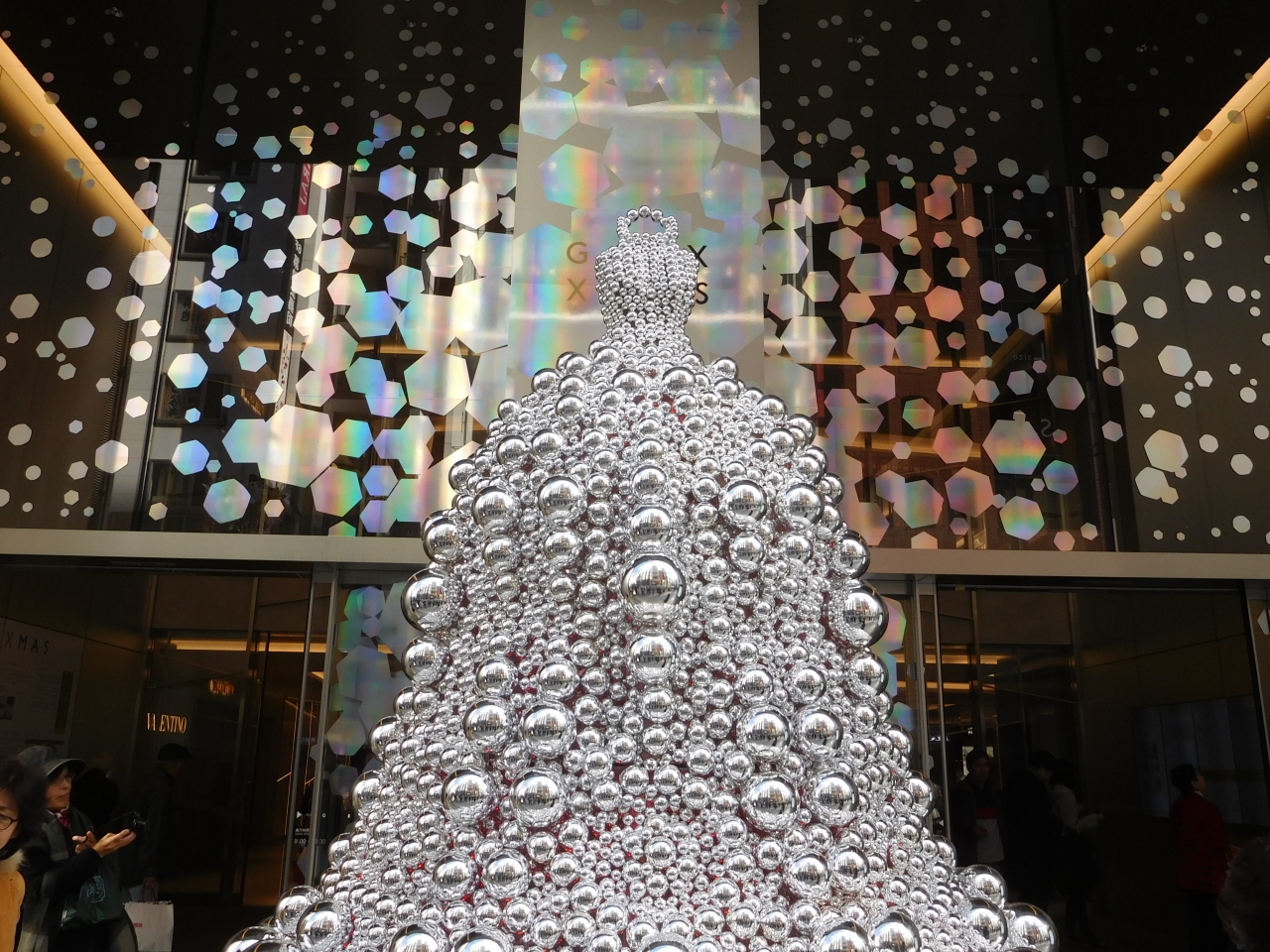2017年4月に「銀座六丁目」の地にオープンした商業施設です。銀座らしく高級感にあふれ、広い吹き抜けでとても解放感があって、ゆっくりと買い物をして過ごせるようになっていました。草間彌生さんの白と赤の個性的なオブジェが印象的でした。正面の入口には、ゴージャスなドレスのようなフォトスポットがあり、多くの人が記念撮影をしていました。また、三原テラスにも、クリスマスのフォトスポットがありましたが、スノーマンが不在でちょっと残念でした。6階の蔦屋書店は、すごく斬新なレイアウトのお店だと思いました。