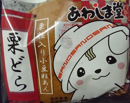 愛媛県発祥で愛媛県八幡浜や京都府伏見、そして栃木県佐野に工場直売所があるようです。こちらの「栗どら」をいただきました。パッケージが佐野市のキャラクター「さのまる」で可愛らしいです。しっとりとした皮に、細かく刻んだ栗入りの餡で美味しく頂きました。温めてもおいしいと袋裏面に記載されていました。