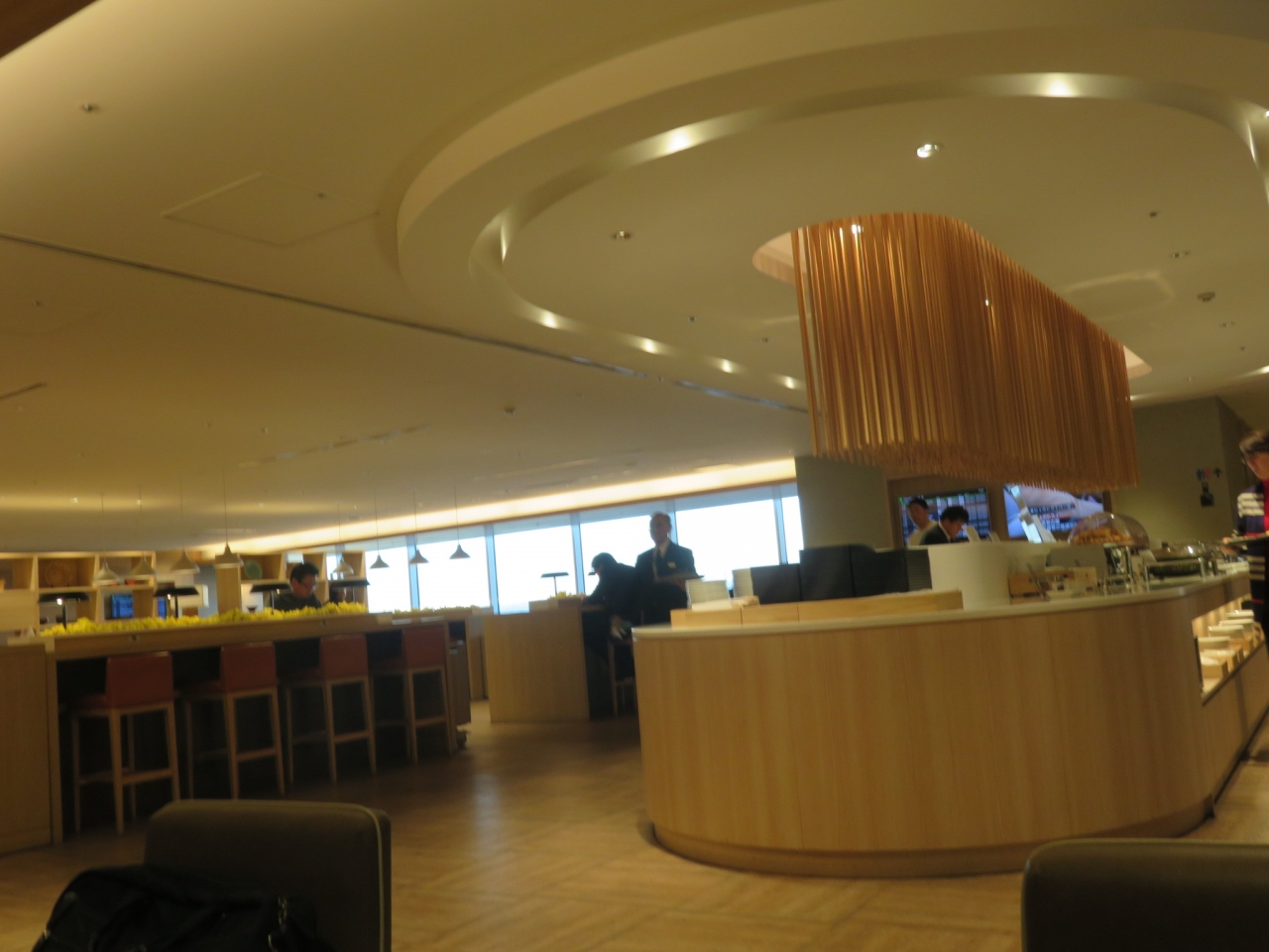 8:00過ぎの便だったので7:00頃に行きました。広いという訳ではないのですが混雑はしていなくて充分にゆっくりできます。ここで食事をいただいたので機内では休むことができました。食事はもう少しバリエーションがあったもよいかなぁと思いました。